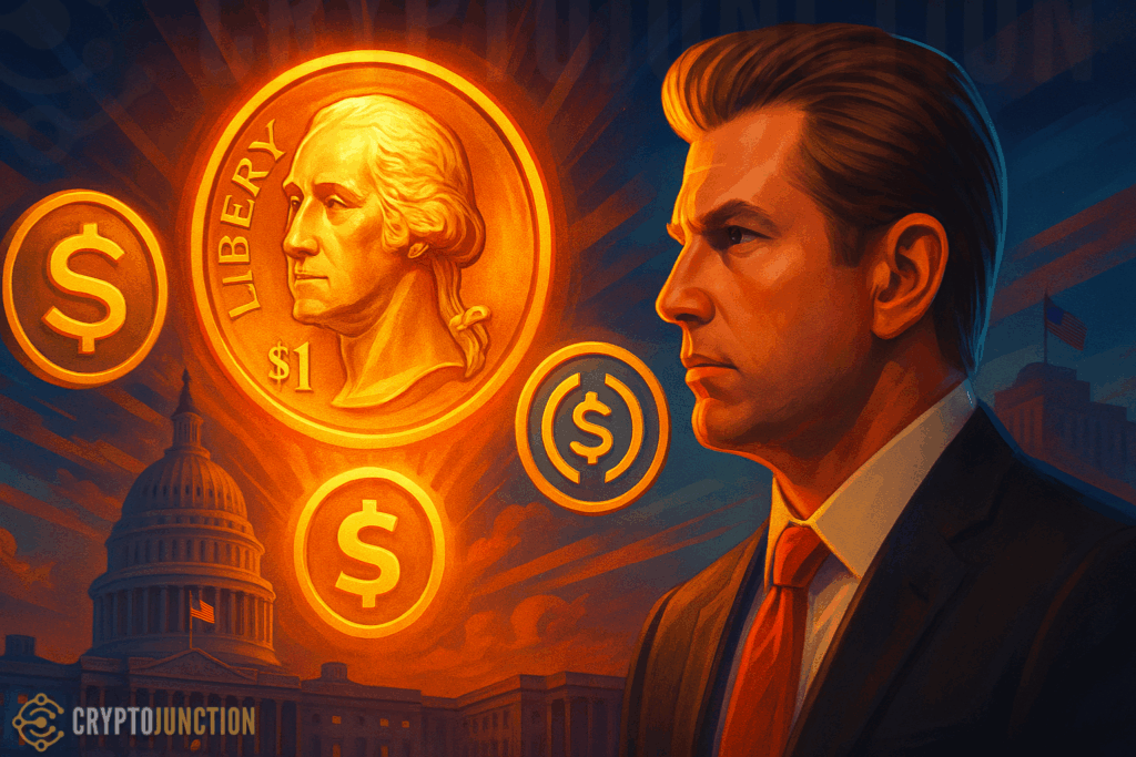 In a recent chat with the New York Post, Eric Trump made a bold prediction. He said stablecoins could “save the US dollar.” He pointed to his family’s crypto project, World Liberty Financial, and its stablecoin called USD1, which is tied directly to the dollar. The idea is simple. Unlike Bitcoin’s rollercoaster price swings, USD1 would hold steady, making it easier for people to trust and use.
