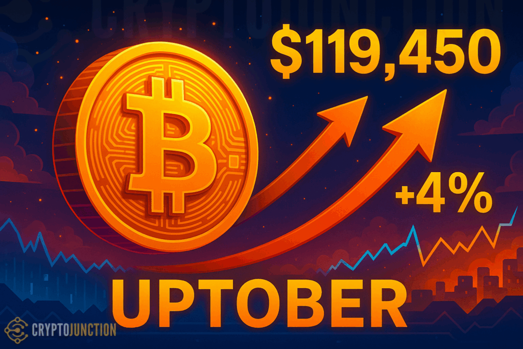 Bitcoin, the king of digital assets, surged 4% in just 24 hours, touching $119,450 — a level unseen for seven weeks. Traders blinked, wallets shook, and whispers of “Uptober magic” swept across social feeds. Could October really deliver its legendary bullish punch, or is this just the calm before another storm?